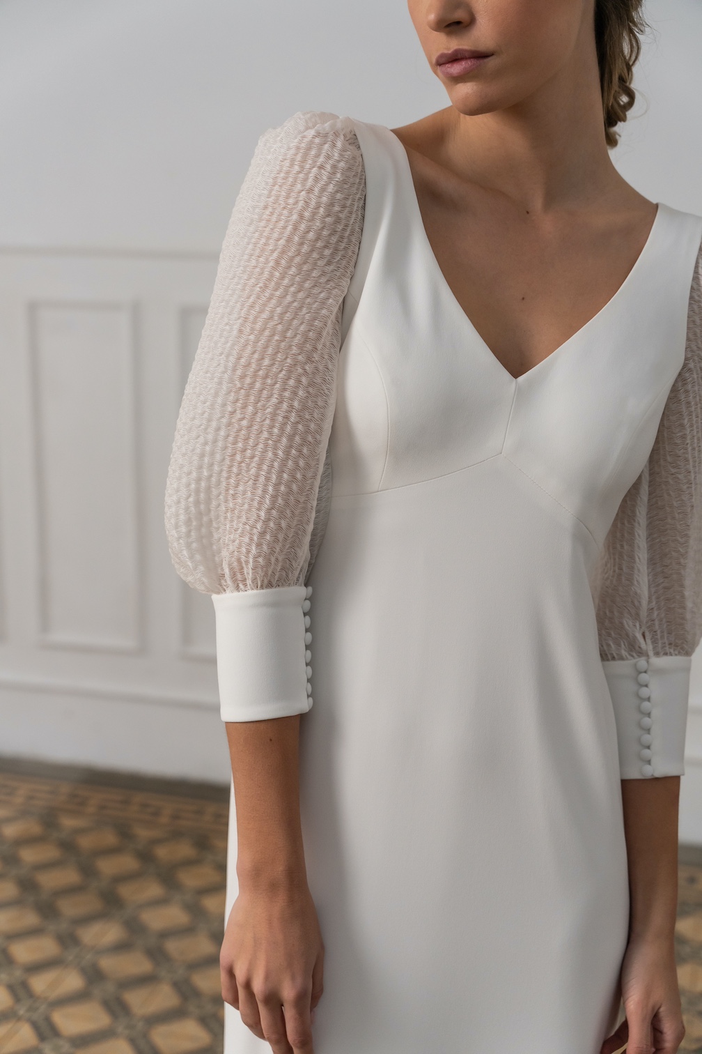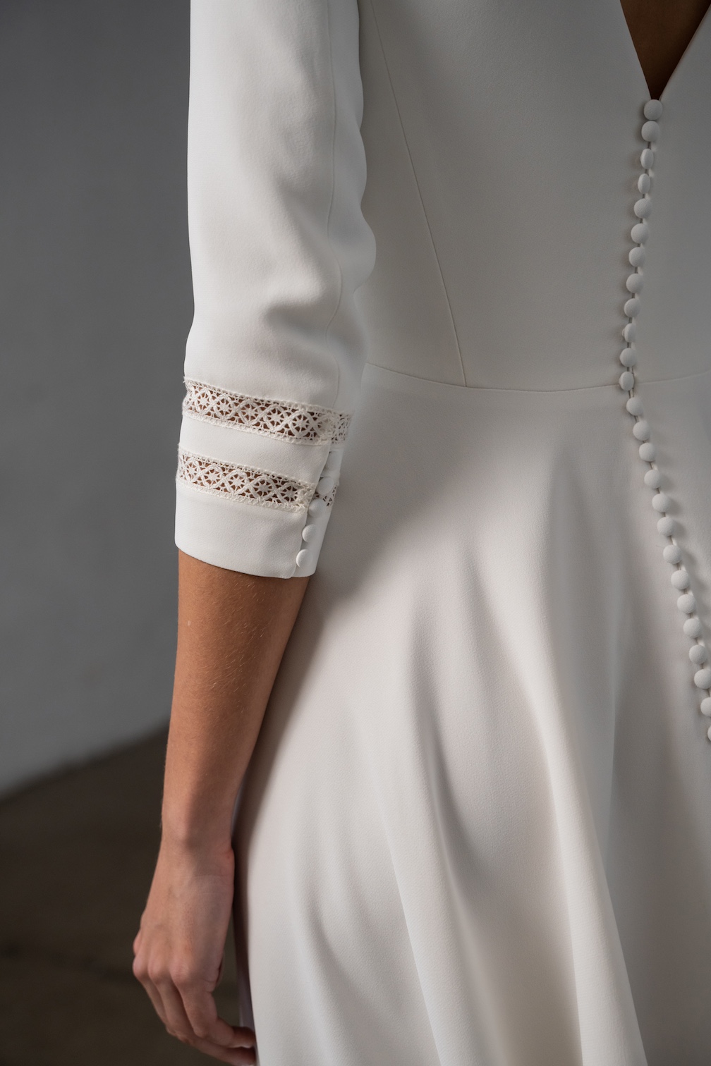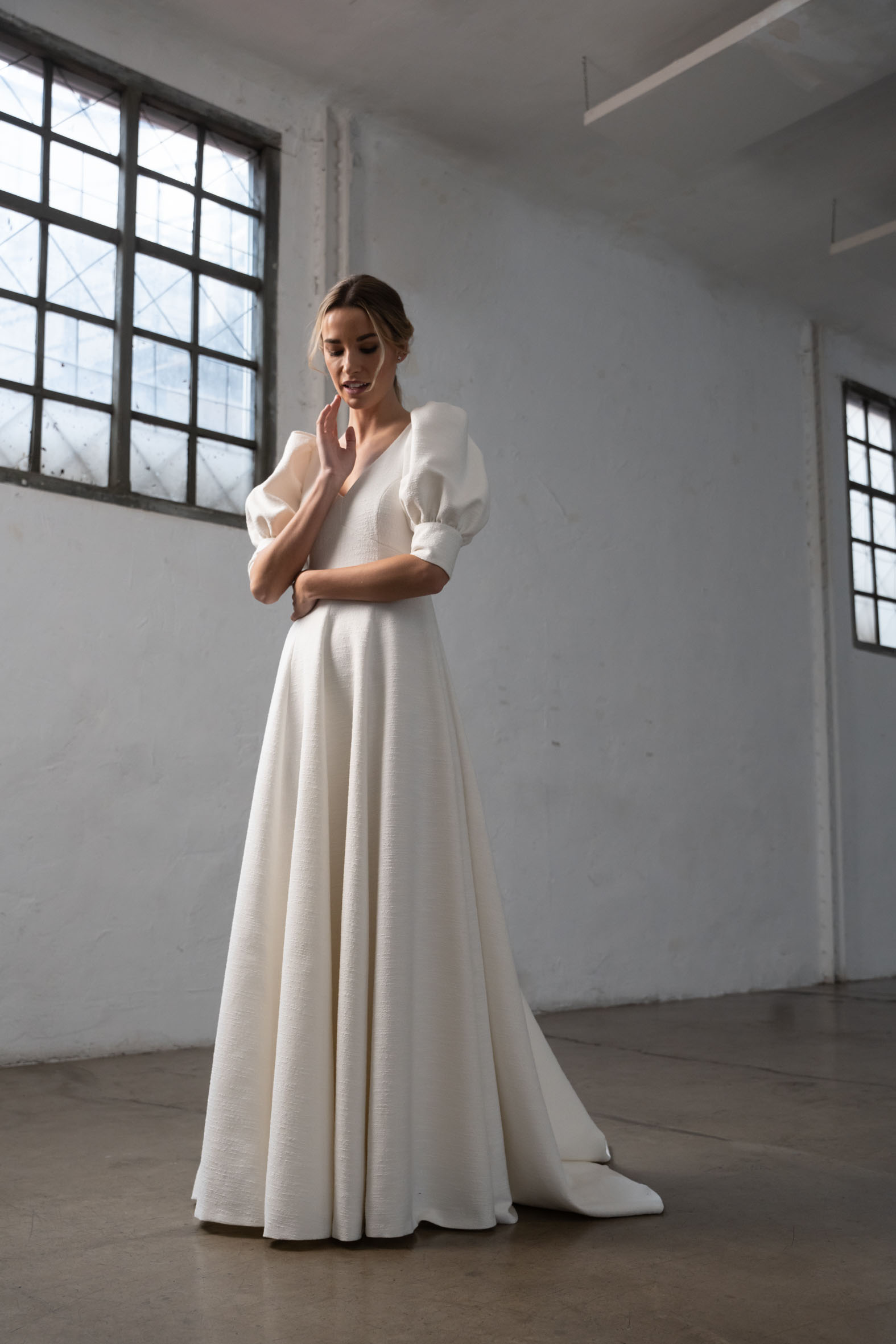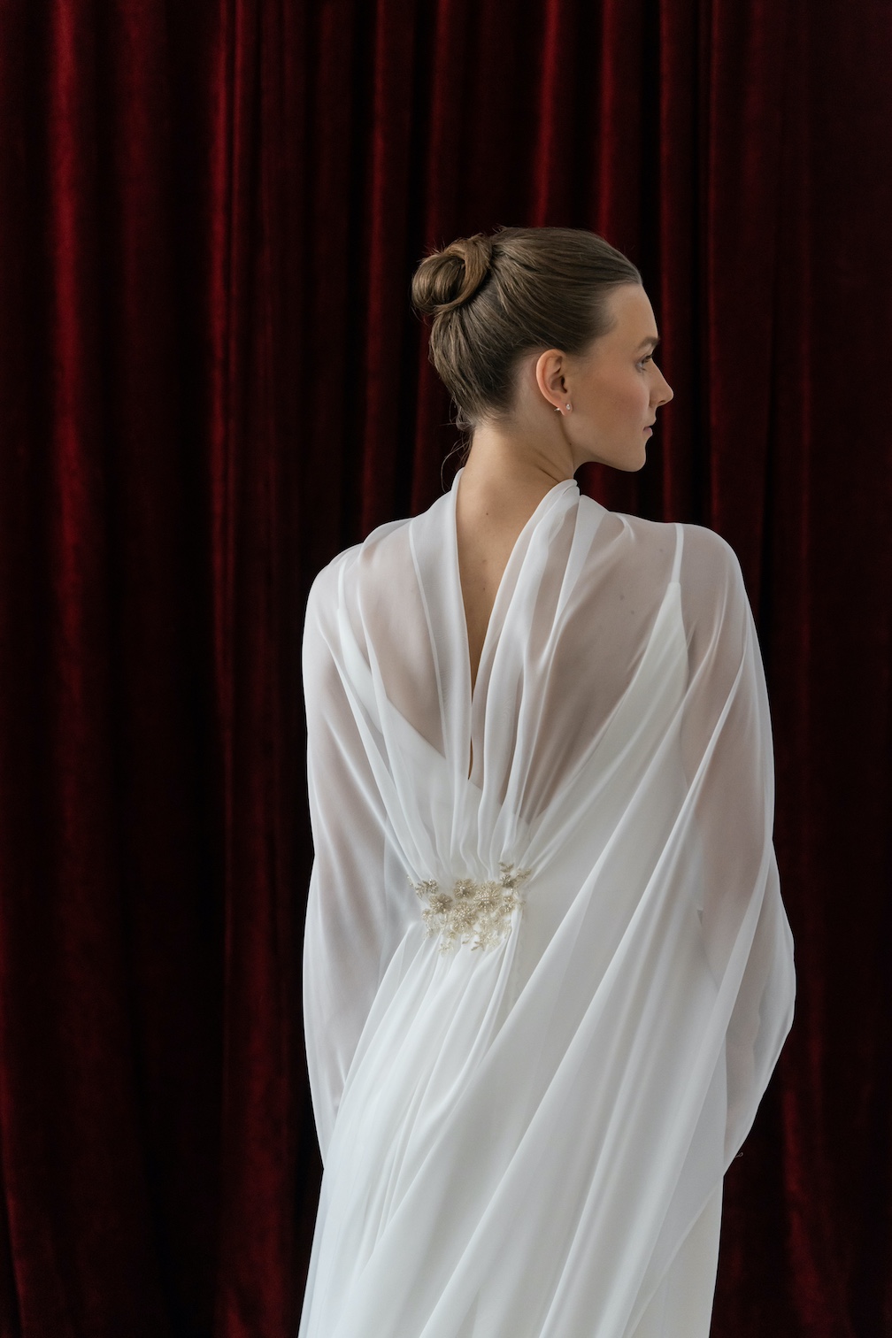 Con un enfoque en la fluidez de los tejidos y las siluetas, la marca se especializa en el uso de materiales como crepe, muselina, gasa o bambula de seda, que aportan suavidad y movimiento.