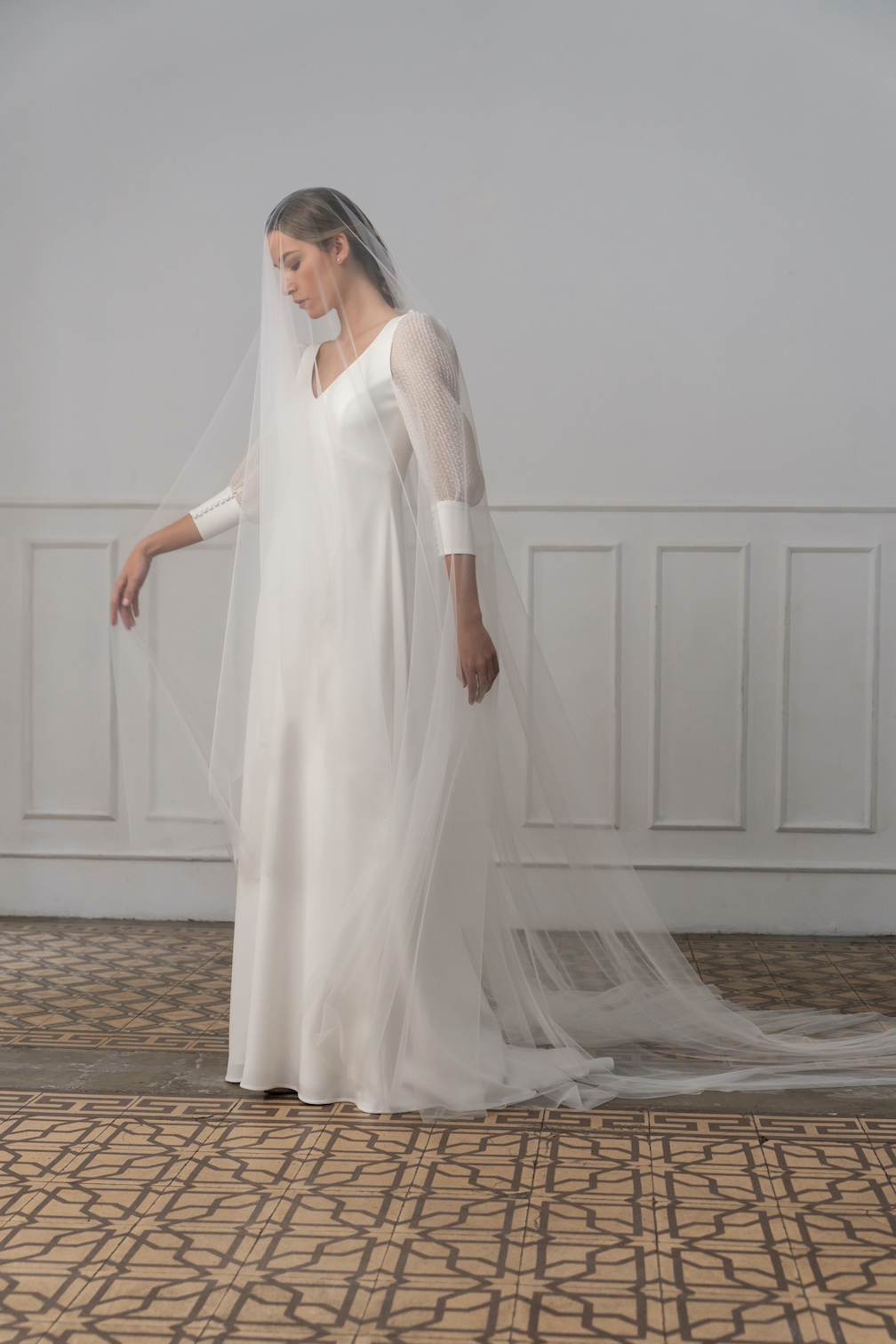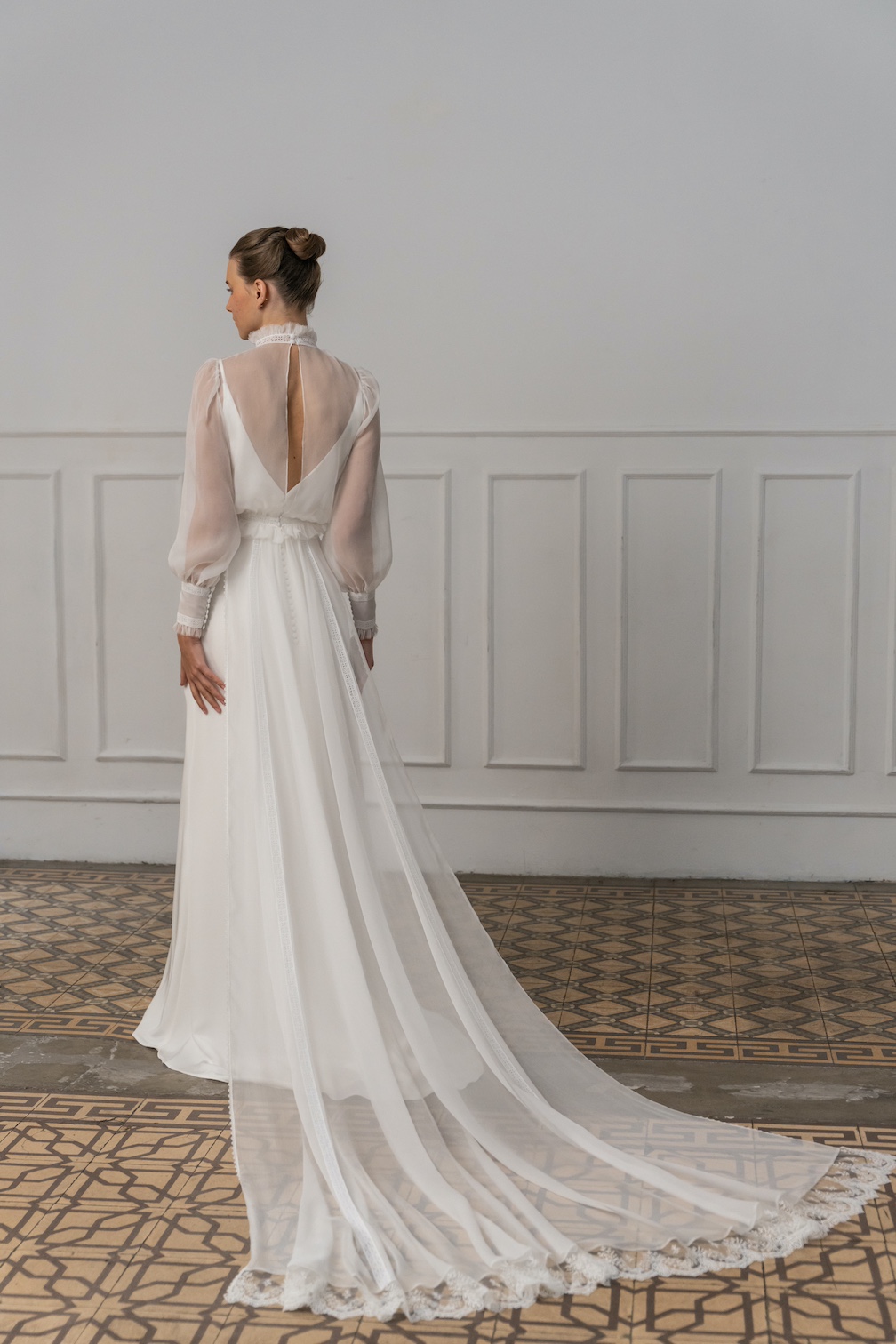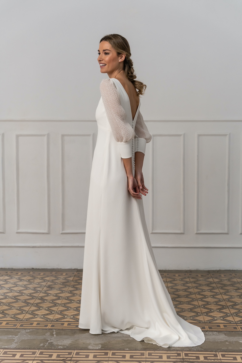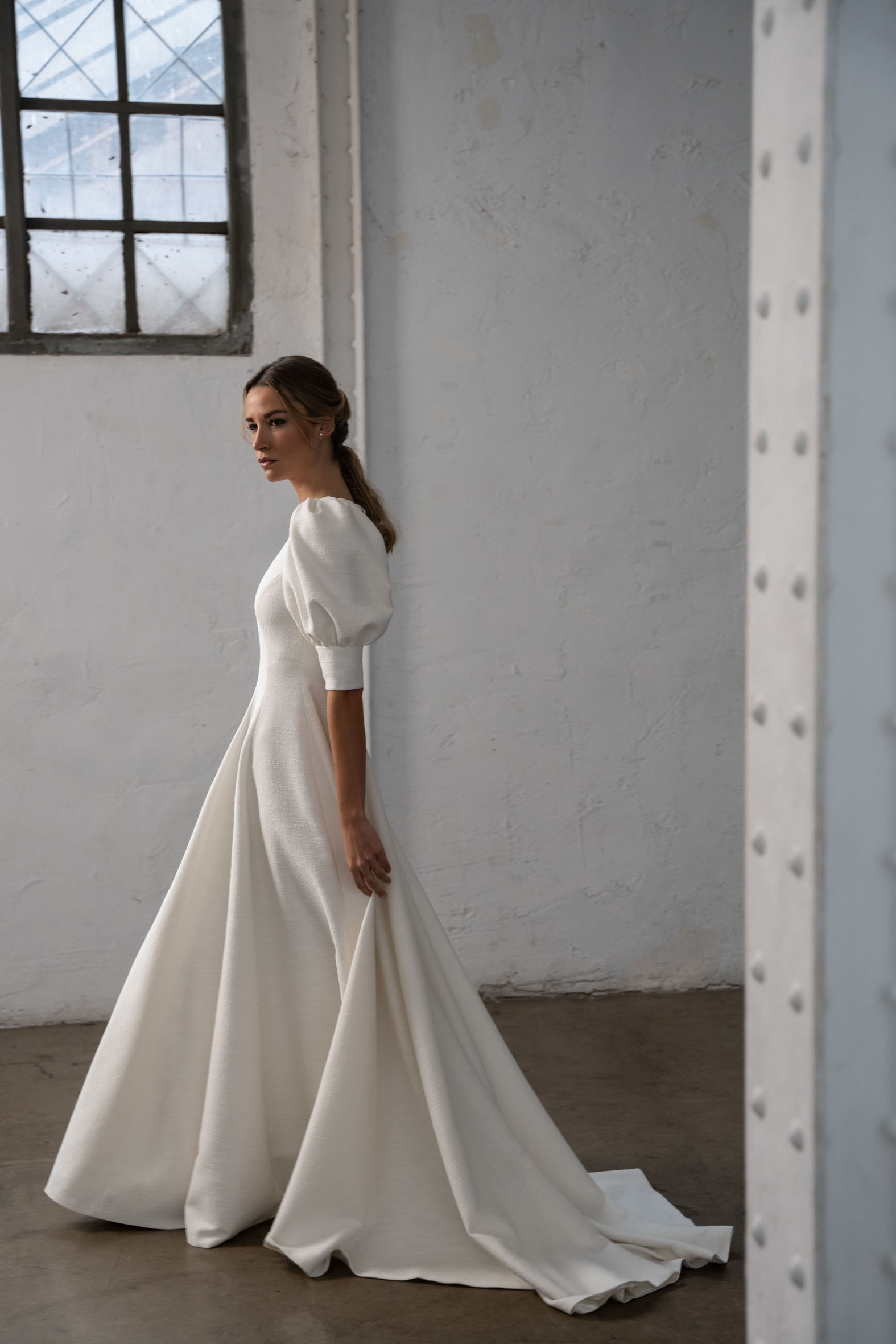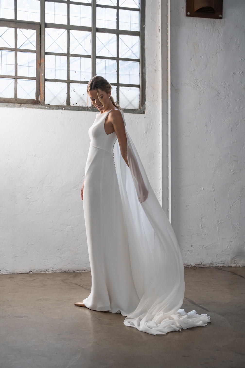 Con un enfoque en la fluidez de los tejidos y las siluetas, la marca se especializa en el uso de materiales como crepe, muselina, gasa o bambula de seda, que aportan suavidad y movimiento.
